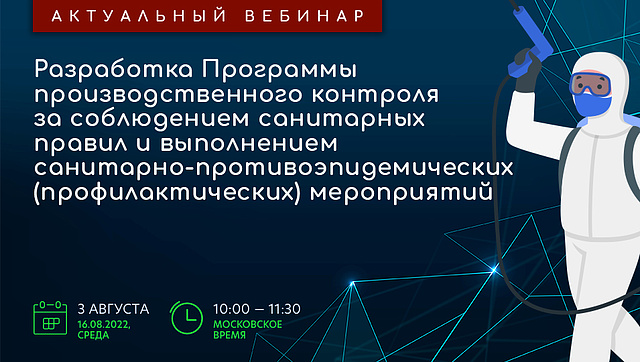 I. Вебинар посвящен получению практических навыков по разработке Программы производственного контроля за соблюдением санитарных правил с учетом особенностей объекта, включая организацию лабораторного контроля, а также взаимосвязи и отличиям Программы производственного экологического контроля и Программы производственного контроля за соблюдением санитарных правил.